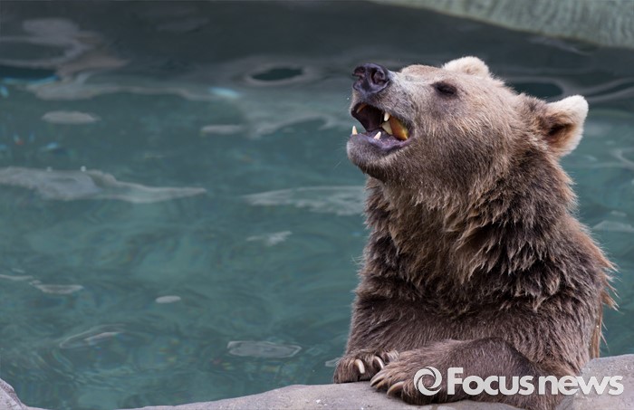 (과천=포커스뉴스) 28일 오후 경기도 과천 서울동물원에서 불곰이 얼음과일을 먹고 있다.