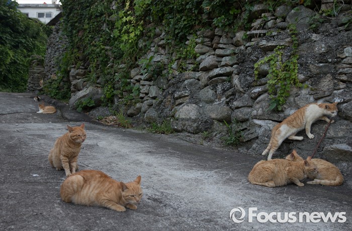 (여서도=포커스뉴스) 전남 완도군 청산면 여서도의 길냥이들이 많은 사람들이 떠난 마을의 골목을 차지하고, 외지인들이 접근하자 길을 피할까 말까 고민하고 있다.