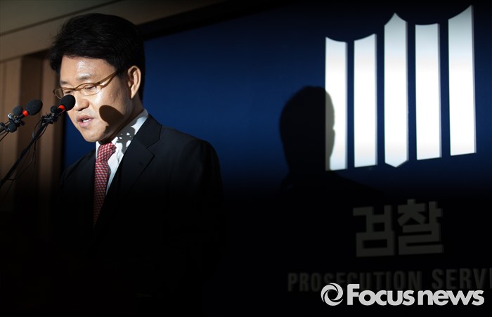 (서울=포커스뉴스) 이금로 특임검사가 29일 오전 서울 서초구 서울중앙지검 브리핑실에서 '100억대 주식 대박 의혹' 진경준 검사장에 대한 수사결과를 발표하며 고개를 숙이고 있다.