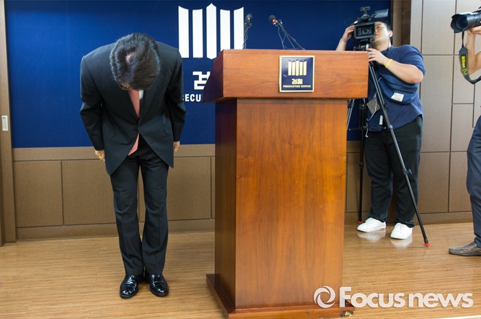 (서울=포커스뉴스) 이금로 특임검사가 29일 오전 서울 서초구 서울중앙지검 브리핑실에서 '100억대 주식 대박 의혹' 진경준 검사장에 대한 수사결과를 발표한 후 취재진 향해 인사하고 있다.