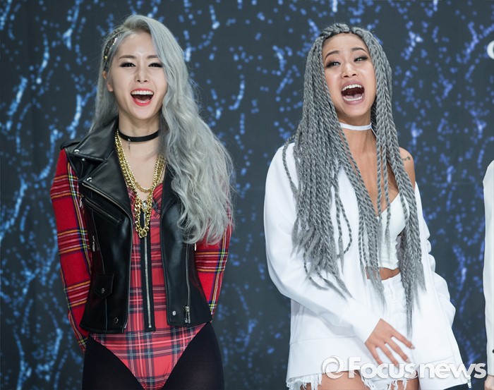 (서울=포커스뉴스) 29일 오전 서울 영등포구 타임스퀘어 아모리스홀에서 열린 Mnet '언프리티 랩스타 3' 제작발표회에 참석한 래퍼 그레이스(왼쪽)와 나다가 포토타임을 갖고 있다.