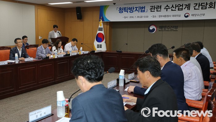 (세종=포커스뉴스) 서장우 해양수산부 수산정책국장이 29일 오후 세종시 정부세종청사 해수부 대회의실에서 열린 청탁방지법(김영란법) 관련 수산업계 간담회를 주재하고 있다.