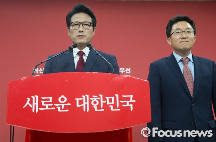(서울=포커스뉴스) 전당대회 대표최고위원 출마를 선언한 정병국(왼쪽), 김용태 새누리당 의원이 29일 오후 서울 여의도 당사에서 단일화 발표 기자회견을 하고 있다. 이날 두 의원은 여론조사를 통해 정병국 의원으로 단일화를 결정했다.