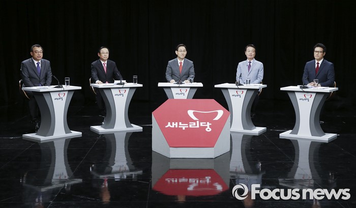 (서울=포커스뉴스) 29일 오후 서울 마포구 상암동 DDMC에서 종합편성채널 채널A 주최로 새누리당 당대표 경선 1차 토론회가 진행되고 있다. 왼쪽부터 이정현, 이주영, 주호영, 한선교, 정병국 의원.
