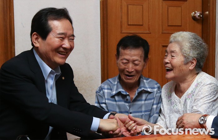 | △ 고령 이산가족과 손 잡은 정세균 |