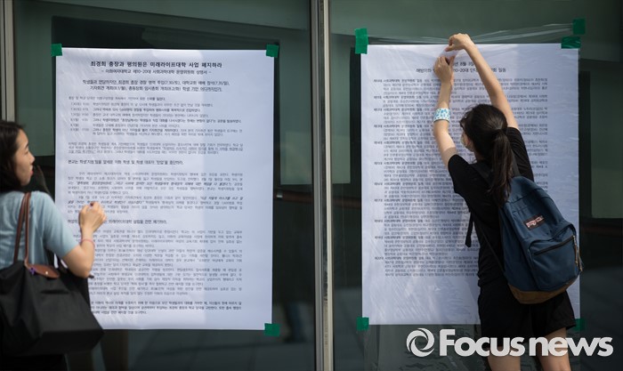| △ 대자보 붙이며 시위 이어가는 이화여대 학생들 |