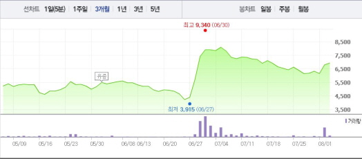 한편, 미국 플로리다주에서는 모기에 물려 지카바이러스에 감염된 환자가 14명으로 집계됐다. 이 중 여성은 2명, 남성은 10명이다. 미국 질병통제예방센터(CDC)는 여행 경보를 발령하고 임산부들의 출입 자제를 요청한 것으로 알려졌다.명문제약 주가흐름<사진출처=네이버 캡쳐>