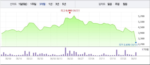 보타바이오는 3일 오전 9시23분 현재 전 거래일 대비 26.81%(1095원) 하락한 2990원에 거래되고 있다.