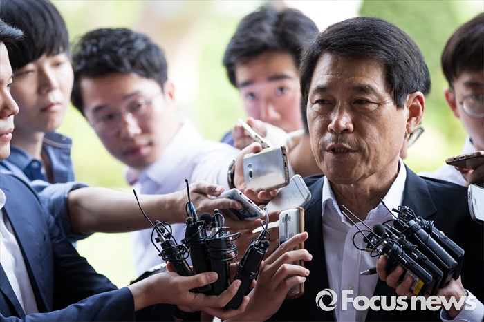 (서울=포커스뉴스) 보좌관의 월급을 빼돌려 정치자금으로 사용한 혐의를 받고 있는 이군현 새누리당 의원이 피의자 신분으로 4일 오전 서울 양천구 서울남부지방검찰청으로 들어서기 전 취재진의 질문을 받고 있다.