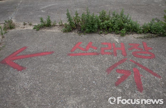 (여서도=포커스뉴스) 여서도 선착장의 도로 위에 쓰레기장 안내 글씨가웃음이 나온다. 쓰시는 분이 딴 생각을 한것 같다.