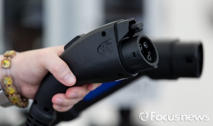 (서울=포커스뉴스) 2일 오후 서울 마포구 상암월드컵경기장에서 열린 개방형 전기차 충전소 1호 착공식에서 급속충전기와 플러그인 코드가 전시돼 있다.