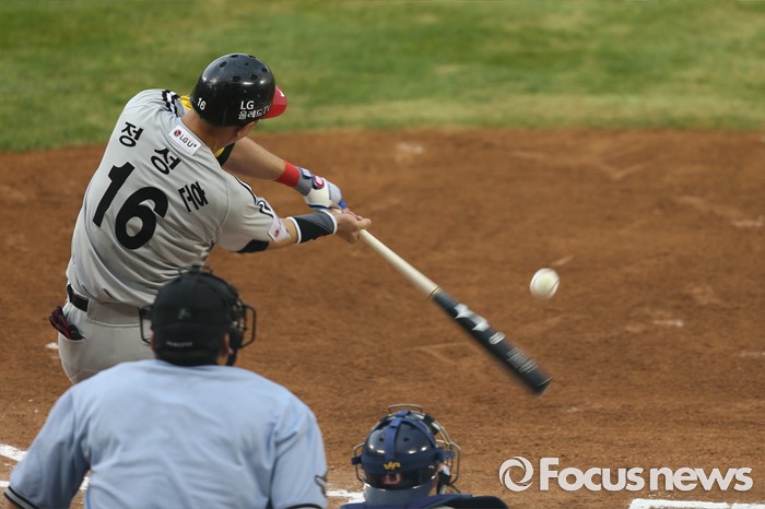 (서울=포커스뉴스) 2일 오후 서울 잠실구장에서 열린 2016 프로야구 LG-두산 경기 2회초 무사 상황, 정성훈이중견수 오른쪽 2루타를 치고 있다.