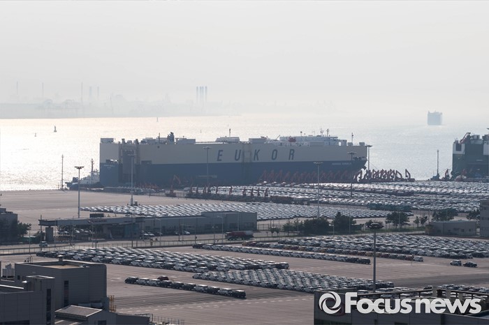 (평택=포커스뉴스) 환경부의 인증취소 및 판매정지 행정처분으로 폭스바겐 코리아가 퇴출수순을 밟고 있는 3일 오후 폭스바겐 차량을 싣고 독일 브레멘하벤에서 출항한 모닝코넬리아호가 경기도 평택항에 도착, 접안되어 있다.