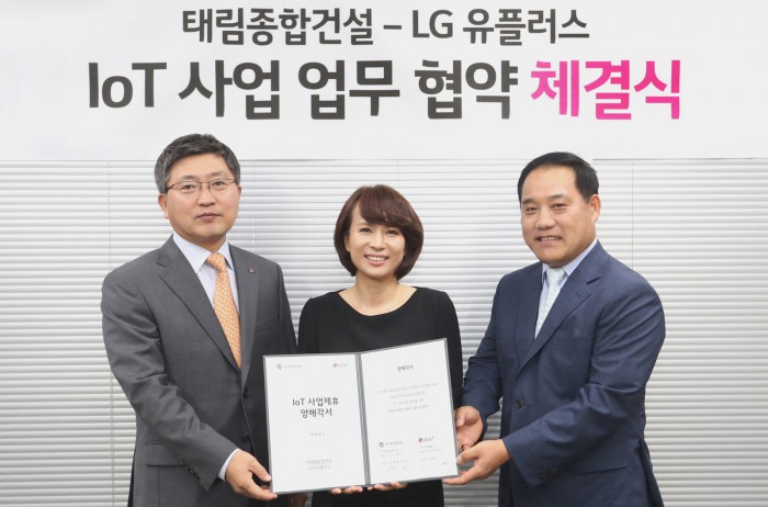 (서울=포커스뉴스) LG유플러스는 부동산 종합개발회사인 태림종합건설과 사물인터넷(IoT) 오피스텔 구축을 위해 손잡았다. 4일 LG유플러스에 따르면 양사는 김포한강신도시 ‘태림 더 끌리움’ 오피스텔과 청라지구 오피스텔 등 약 1000 세대 홈 IoT솔루션을 공급하고, 추후 IoT 오피스텔 구축을 전국으로 확대할 계획이다.