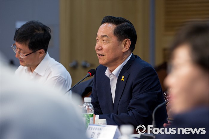 (서울=포커스뉴스) 더불어민주당 전당대회 당대표 출마에 나선 김상곤 후보가 1일 오후 서울 여의도 국회의원회관에서 열린 '전국자치분권민주지도자회의 당대표 후보자 초청 토론회'에 참석해 인사말 하고 있다.