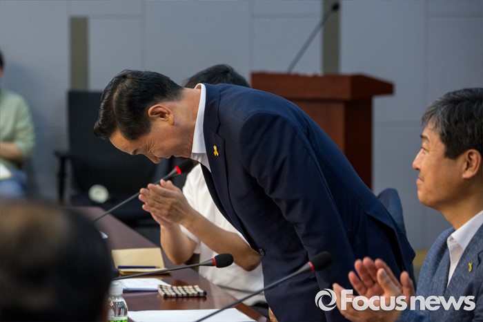 (서울=포커스뉴스) 더불어민주당 전당대회 당대표 출마에 나선 김상곤 후보가 1일 오후 서울 여의도 국회의원회관에서 열린 '전국자치분권민주지도자회의 당대표 후보자 초청 토론회'에 참석해 인사하고 있다.