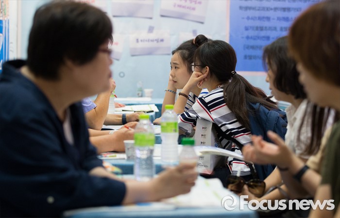 (서울=포커스뉴스) 3일 오후 서울 강남구 코엑스에서 2017학년도 수시 전문대학 입학정보 박람회를 찾은 학생들이 입시상담을 하고 있다.