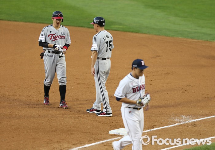 (서울=포커스뉴스) 2일 오후 서울 잠실구장에서 열린 2016 프로야구 LG-두산 경기 3회초 무사 상황, 우익수 플라이 아웃 당한 손주인이 아쉬워 하고 있다.