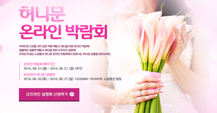 약 3주간 진행되는 '허니문 온라인 박람회'는 바쁜 예비부부들이 편리하게 허니문을 준비 할 수 있도록 온라인 박람회와 자세한 상담을 원하는 예비부부들을 위한 오프라인 설명회를 동시에 진행한다.