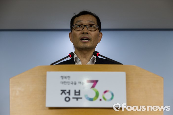 (서울=포커스뉴스) 서울시 청년수당 지급이 시작된 3일 오전 서울 종로구 정부서울청사 브리핑룸에서 강완구 보건복지부 사회보장위원회 사무국장이 보건복지부의 입장을 밝히고 있다.