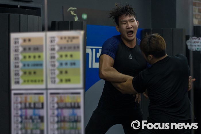 (서울=포커스뉴스) 오는 21일(한국시각) 미국 라스베이거스 T-모바일 아레나에서 개최되는 UFC-202에 출전해 러시아 출신 술탄 알리예프를 상대로 웰터급 경기가 예정된 임현규(왼쪽)가 3일 오후 서울 서대문구 TAP복싱 & 레슬링에서 레슬링 훈련 하고 있다.