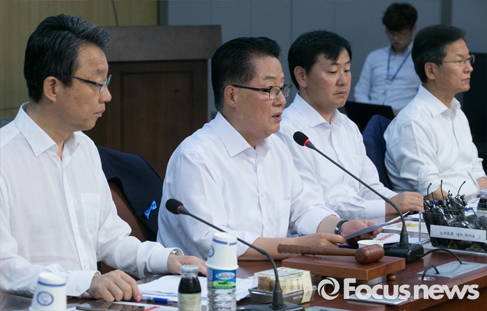 (서울=포커스뉴스) 2일 오전 서울 여의도 국회 의원회관에서 열린 국민의당 의원총회에 참석한 박지원(왼쪽 두번째) 비상대책위원장이 모두발언을 하고 있다.