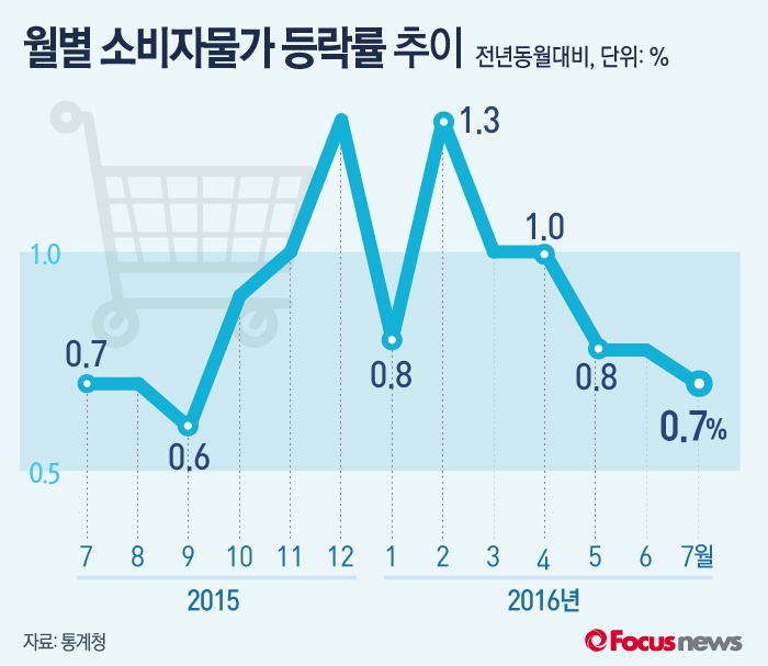 (서울=포커스뉴스) 1일 통계청이 발표한 ‘7월 소비자물가 동향’에 따르면 지난달 소비자물가지수는 110.82로 전년 동월보다 0.7% 증가했다.