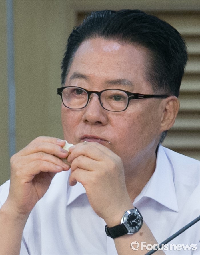 (서울=포커스뉴스) 2일 오전 서울 여의도 국회 의원회관에서 열린 국민의당 의원총회에 참석한 박지원 비상대책위원장이 샌드위치를 먹고 있다.