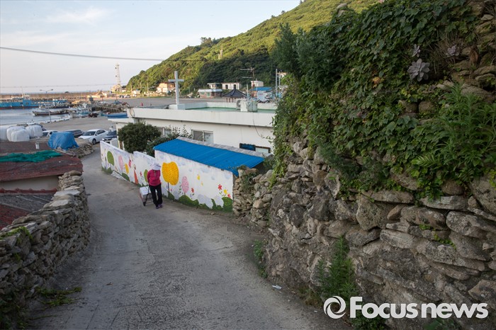 (여서도=포커스뉴스) 여서도의 한 주민이 육지에서 온 생활용품을 손수레에 담고 집으로 오고 있다.