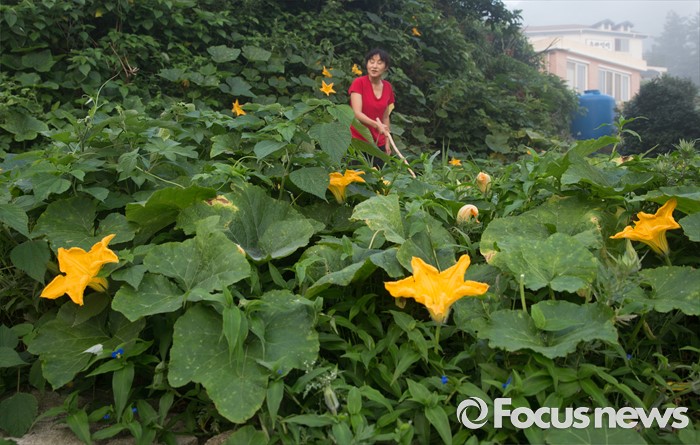 (여서도=포커스뉴스) 여서도의 한 주민이 뒤뜰의 호박밭에서 잘 익은 호박을 찾고있다.