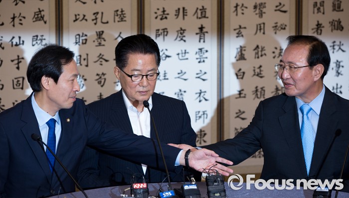 (서울=포커스뉴스) 우상호(왼쪽) 더불어민주당 원내대표와 노회찬(오른쪽) 정의당 원내대표가 3일 오전 서울 여의도 국회에서 열린 원내대표 회동에 참석해 모두발언 순서를 정하고 있다.