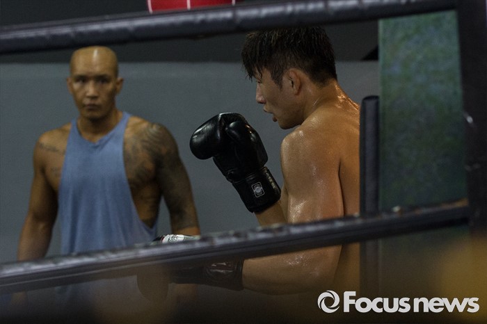 (서울=포커스뉴스) 오는 21일(한국시각) 미국 라스베이거스 T-모바일 아레나에서 개최되는 UFC-202에 출전해 러시아 출신 술탄 알리예프를 상대로 웰터급 경기가 예정된 임현규(오른쪽)가 3일 오후 서울 서대문구 TAP복싱 & 레슬링에서 훈련 하고 있다.