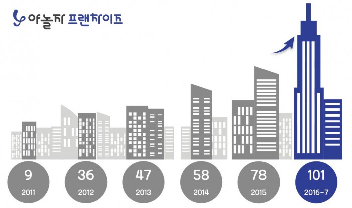 2011년 사업 진출 첫 해 9개점 확보를 시작으로 2012년 36개, 2013년 47개, 2014년 58개, 2015년 78개에 이어 2016년 현재 101개로 100개를 넘어섰다.
