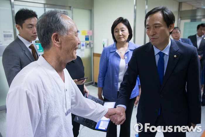 (서울=포커스뉴스) 우상호 더불어민주당 원내대표는 3일 경찰의 물대포에 맞아 의식 불명인 백남기 농민이 입원한 서울대병원을 찾아 가족을 위로했다.