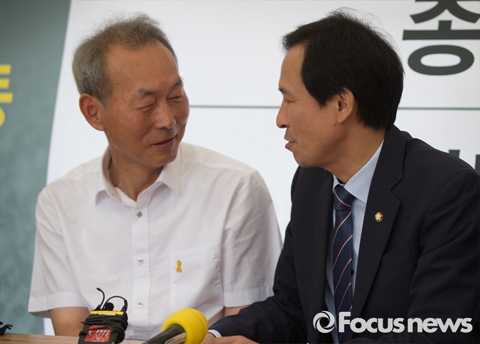 더민주 세월호 TF 간사인 박주민 의원은 "진상을 밝히기 위해 조사기간을 보장하는 것은 아주 기본적인 전제"라며 "정부·여당은 철저한 조사에 협조해 아픈 고통의 역사를 다시 만들지 말아야 하고 이를 위해 특조위의 활동을 중단시키는 또 한 번의 잘못도 저질러서는 안된다"고 강조했다.서울 종로구 광화문 광장에서 단식농성중인 이석태(왼쪽) 세월호 참사 특별위원장과 우상호 더불어민주당 원내대표가 대화를 나누고 있다. 2016.08.01 김유근 기자