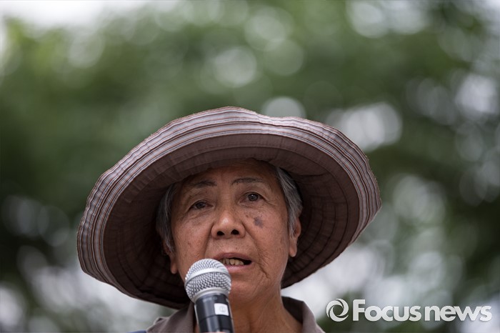 (서울=포커스뉴스) 3일 오후 서울 종로구 구 일본대사관 앞에서 열린 '제1242차 일본군 위안부 문제해결을 위한 정기 수요집회'에 참석한 일본인 활동가가 자유발언 하고 있다.