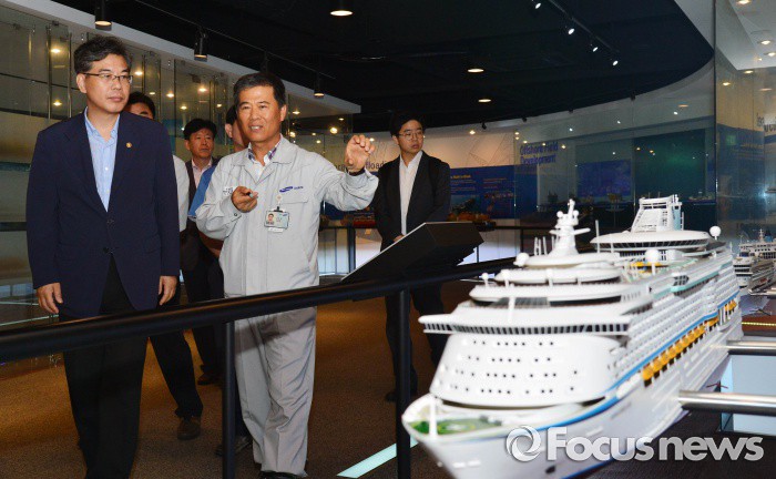 (거제=포커스뉴스) 송언석 기획재정부 2차관이 1일 경남 거제시 소재 삼성중공업 조선소를 방문해 사업장 시찰을 하고 있다. <사진제공=기획재정부>