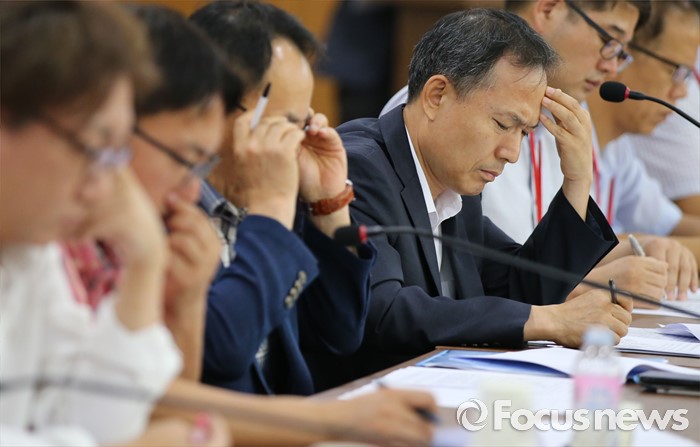 (세종=포커스뉴스) 김경규 농림축산식품부 식품산업정책관이 2일 오후 세종시 정부세종청사 농식품부 대회의실에서 부정청탁 및 금품 수수의 금지에 관한 법률(김영란법) TF회의를 주재한 가운데 농축산업 종사자들이 굳은 표정을 보이고 있다.