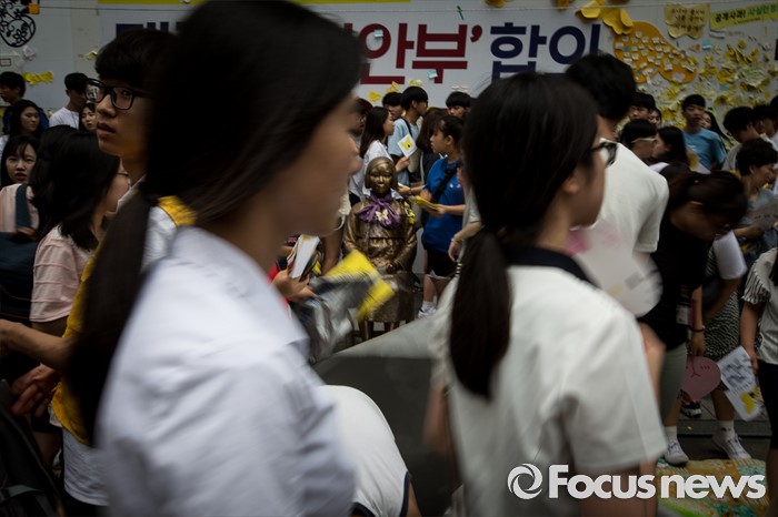 (서울=포커스뉴스) 3일 오후 서울 종로구 구 일본대사관 앞에서 열린 '제1242차 일본군 위안부 문제해결을 위한 정기 수요집회'에 참석한 시민들이 자리를 뜨고 있다.