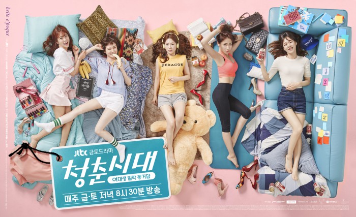 JTBC 금토드라마 '청춘시대'는 외모·성격·취향·목표가 각기 다른 5명의 여대생이 벨 에포크라는 셰어하우스에서 함께 살면서 벌어지는 이야기를 담은 드라마다. 매주 금요일과 토요일 오후 8시 30분 방송된다.JTBC 금토드라마 '청춘시대'의 단체 포스터. <사진제공=JTBC>
