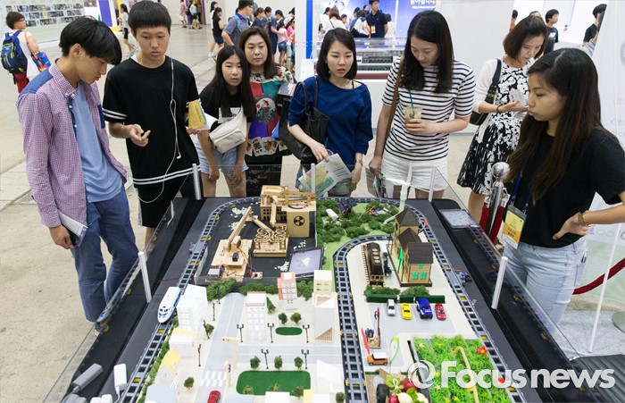 (서울=포커스뉴스) 4일 오전 서울 강남구 코엑스에서 열린 '제20회 대한민국 과학창의축전'을 찾은 시민들이 전동기차를 바라보고 있다.