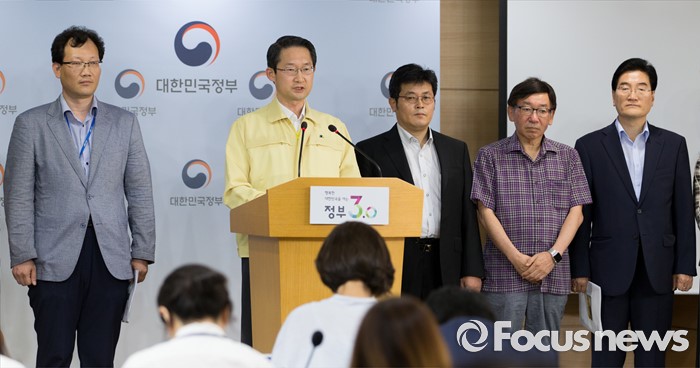 (서울=포커스뉴스) 4일 오후 서울 종로구 정부서울청사에서 김희겸(왼쪽 두번째) 국민안전처 재난관리실장이 부산-울산 악취발생에 따른 민관합동조사단 결과발표를 하고 있다.