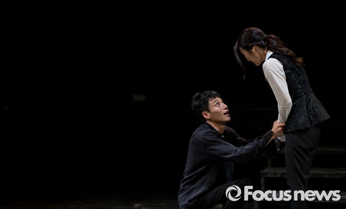 (서울=포커스뉴스) 4일 오후 서울 중구 충무아트센터에서 열린 연극 '햄릿-더 플레이' 언론시연회에 참석한 배우 김동원(왼쪽), 서태영이 열연하고 있다.