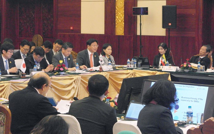 (서울=포커스뉴스) 주형환 산업통상자원부 장관이 4일(현지시간) 라오스 비엔티안 돈 찬 팰리스호텔에서 열린 제19회 ASEAN+3 경제장관회의에 참석해 기조연설을 하고 있다. <사진제공=산업통상자원부>