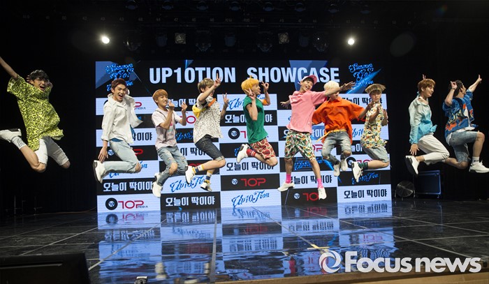 (서울=포커스뉴스) 4일 오후 서울 강남구 일지아트홀에서 열린 아이돌 그룹 업텐션의 미니앨범 'Summer go'발표 쇼케이스에 참석한 멤버들이 포토타임을 갖고 있다.