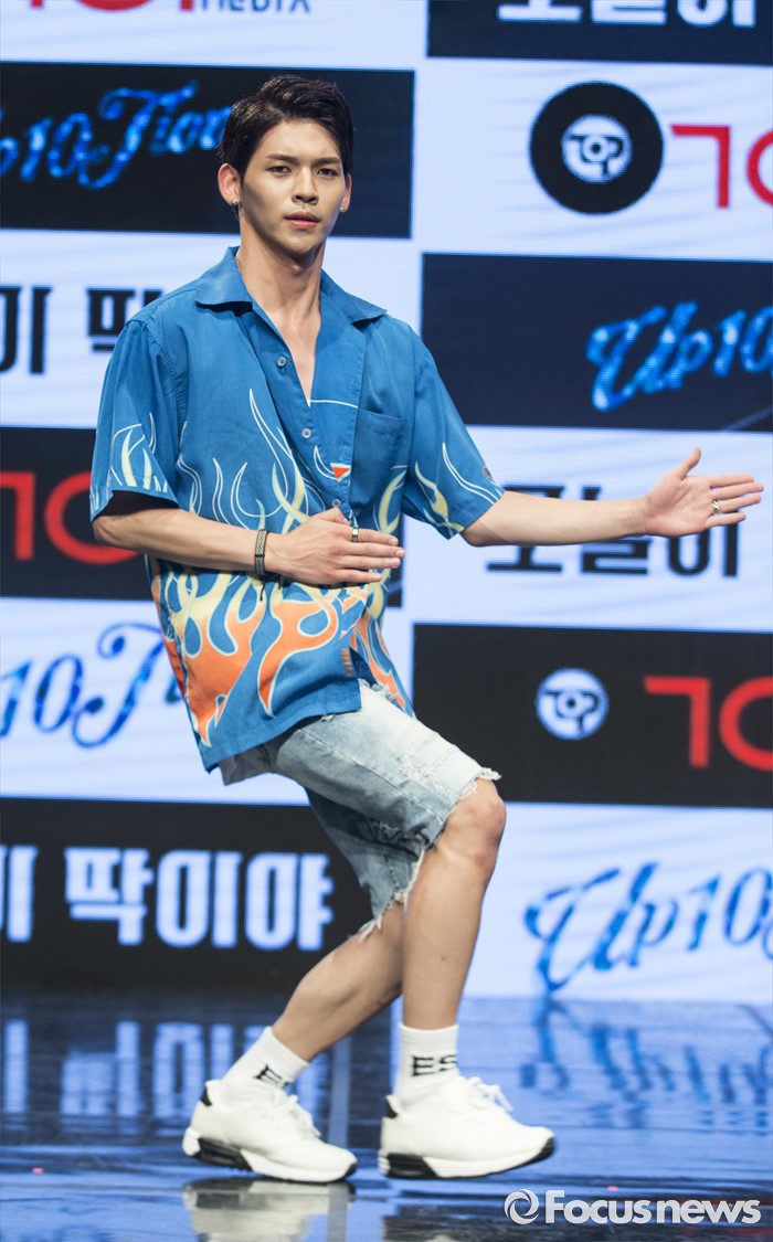 (서울=포커스뉴스) 4일 오후 서울 강남구 일지아트홀에서 열린 아이돌 그룹 업텐션의 미니앨범 'Summer go'발표 쇼케이스에 참석한 멤버 쿤이 포토타임을 갖고 있다.
