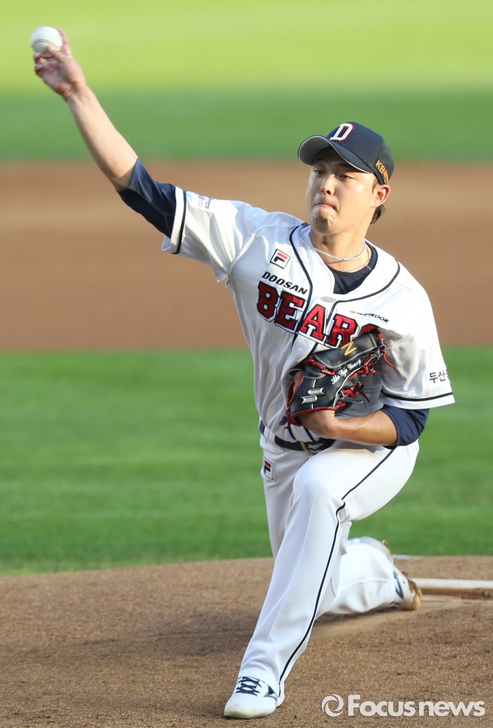 (서울=포커스뉴스) 4일 서울 잠실구장에서 열린 2016 프로야구 LG-두산 경기에서 1회초 두산 선발투수 안규영이 투구하고 있다