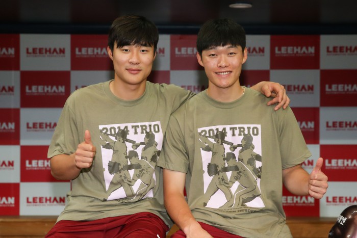 경기 중에는 전광판 이벤트를 통해 나이키 운동화와 의류를 비롯해 다양한 경품을 증정할 예정이다.프로야구 넥센 내야수 김하성(왼쪽)과 내야수 임병욱(오른쪽). <사진 제공=넥센 히어로즈>