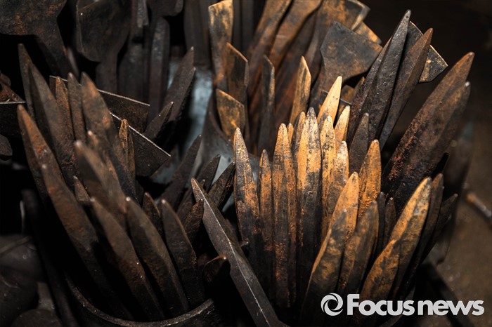(서울=포커스뉴스) 서울이 낮 최고 36도를 기록하는 등 전국적으로 불볕더위가 기승을 부리는 5일 오전 서울 은평구 수색동에 위치한 형제대장간에서 작업이 끝난 건설용 공구들이 화덕 옆에 쌓여 있다.