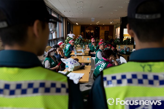 (서울=포커스뉴스) 5일 오전 서울 종로구 서울역사박물관에서 대한육견협회 회원들이 개 식용 종식을 위한 국제컨퍼런스를 반대하는 집회를 하고 있다.